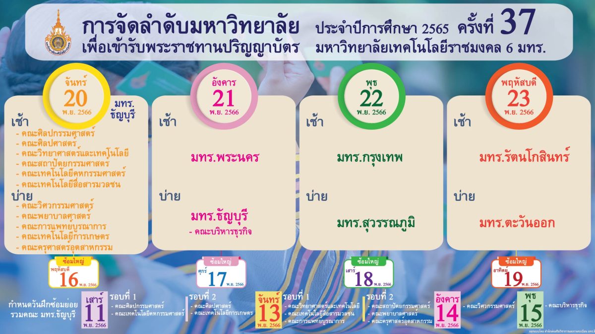 กำหนดการวันพิธีพระราชทานปริญญาบัตร ครั้งที่ 37 ประจำปีการศึกษา 2565 มหาวิทยาลัยเทคโนโลยีราชมงคลธัญบุรี